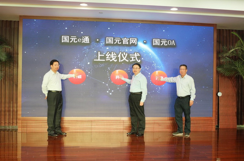 9月8日上午,國元金控集團舉行國元e通、國元官網、國元OA上線儀式。集團黨委書記、董事長方旭出席上線儀式,并與黨委副書記、總經理吳天和黨委副書記姚立斌共同啟動上線按鈕,集團副總經理魏李翔介紹了國元e通、國元官網、國元OA項目建設等情況。