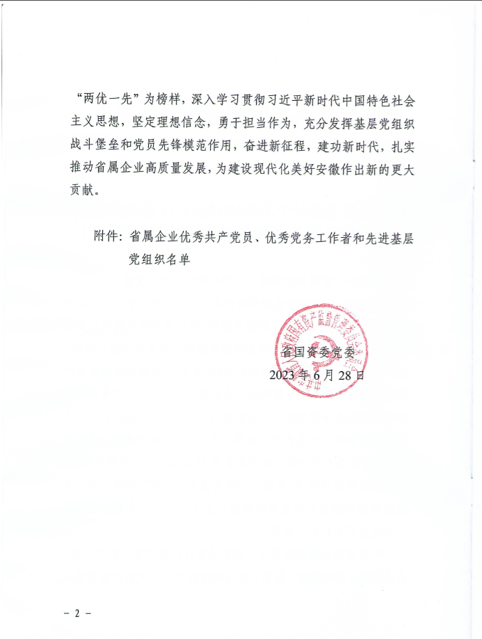 公司各級黨組織和廣大黨員干部員工將以受到表彰的先進集體和個人為榜樣,對標先進、學習先進,不斷加強黨的建設,進一步發(fā)揮黨員先鋒模范作用和基層黨組織戰(zhàn)斗堡壘作用,為公司轉型升級和服務安徽經濟社會貢獻更大力量。