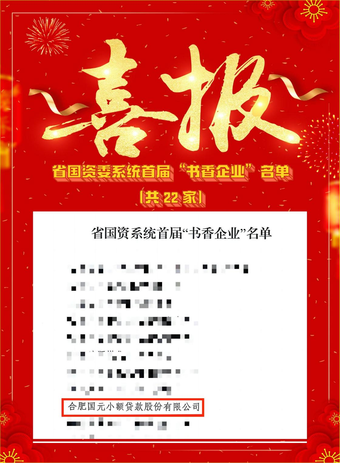 習(xí)近平總書(shū)記指出,中華民族自古提倡閱讀,講究格物致知、誠(chéng)意正心。“書(shū)香企業(yè)”不僅是企業(yè)文化的一筆重彩,也是學(xué)習(xí)型黨組織、學(xué)習(xí)型企業(yè)建設(shè)的直觀體現(xiàn)。在第29個(gè)“世界讀書(shū)日”來(lái)臨之際,公司所屬合肥國(guó)元小貸獲省國(guó)資系統(tǒng)首屆“書(shū)香企業(yè)”榮譽(yù)稱號(hào)。