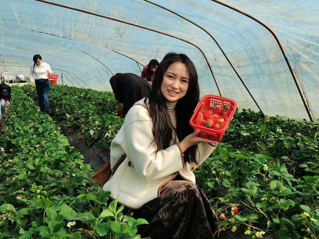初春的空氣還透著絲絲涼意,草莓園里已呈現出一片生機勃勃,春意盎然的景象。碧綠的葉子、小燈籠般鮮紅的草莓、誘人的果香,讓人垂涎欲滴。大家迫不及待地鉆進大棚,一邊采摘,一邊品嘗,歡聲笑語溢滿了整個草莓園。經過近兩個小時的采摘,大家收獲滿滿,紛紛手捧自己辛勤勞動的成果合影留念。