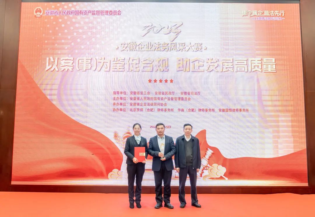 2023年11月15日,由安徽省國資委主辦,安徽省企業法律顧問協會承辦的“2023年安徽企業法務風采大賽”落下帷幕,集團在比賽中喜獲13項榮譽,作品數量和獲獎數量均位列省屬企業第一。