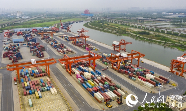 安徽省港航集團旗下的合肥港國際集裝箱碼頭。人民網 張俊攝