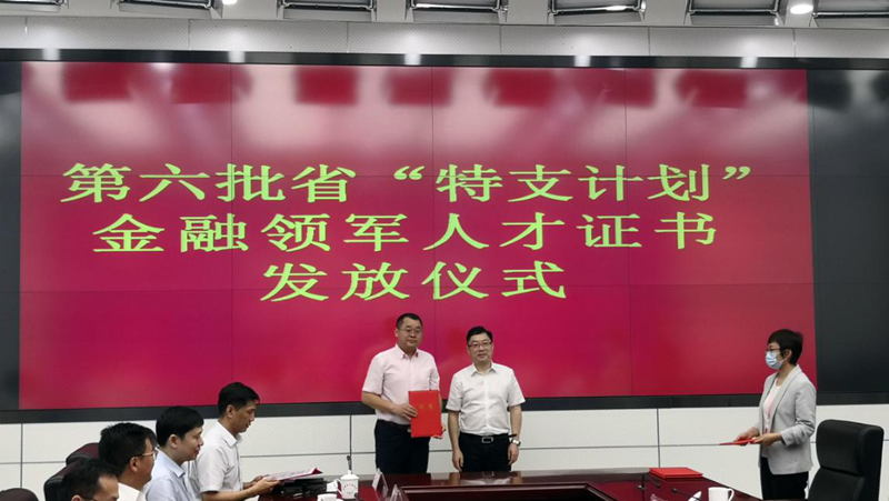 7月28日,安徽省第六批“特支計劃”金融領軍人才證書發放儀式在省政務中心舉行,省地方金融監管局副局長戴利強、省委組織部人才工作處處長黃多能、省地方金融監管局綜合處處長劉連剛等相關單位負責同志參加了發放儀式并向獲選金融領軍人才頒發了榮譽證書。國元投資黨委書記、董事長沈和付同志榮獲省“特支計劃”金融領軍人才稱號。