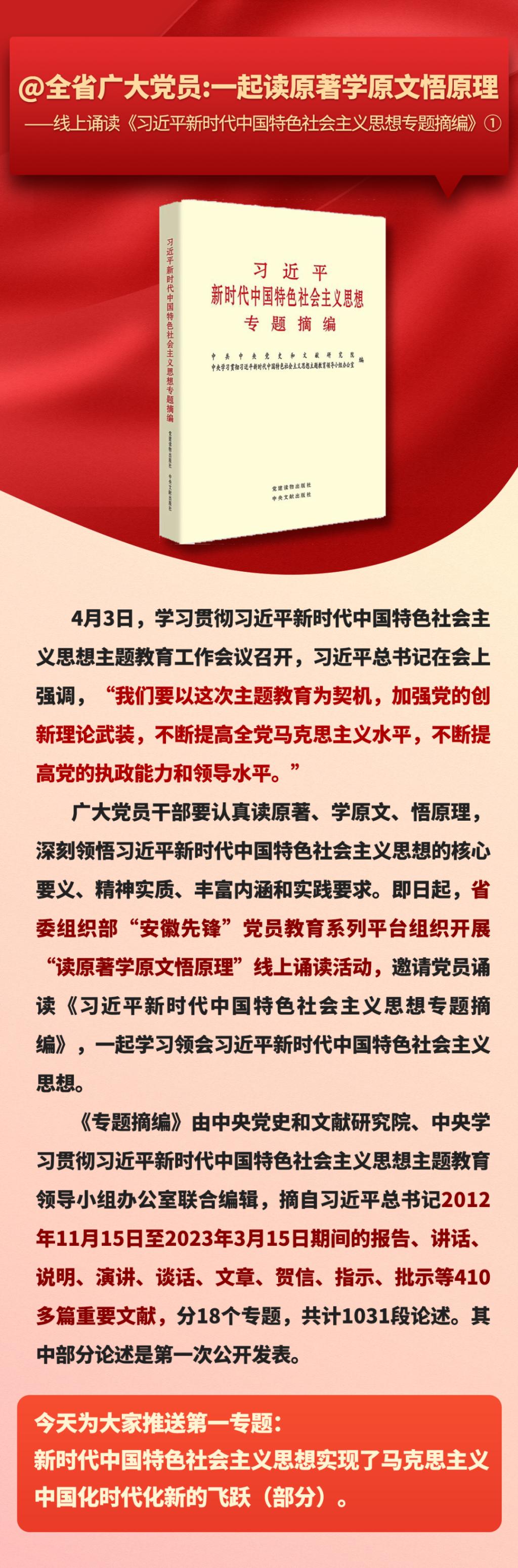 一起讀原著學原文悟原理——線上誦讀《習近平新時代中國特色社會主義思想專題摘編》①