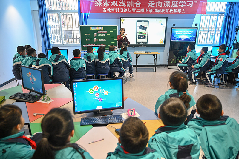 福州教育學院附屬第二小學的學生在由學校與網龍網絡公司共同打造的“創客教室”學習科學課(2020年12月18日攝)。新華社記者 宋為偉 攝
