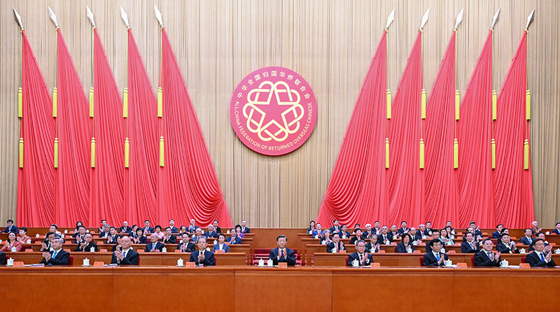 8月31日,第十一次全國歸僑僑眷代表大會在北京人民大會堂開幕。習近平、李強、趙樂際、王滬寧、蔡奇、丁薛祥、李希、韓正等在主席臺就座,祝賀大會召開。新華社記者 謝環馳 攝