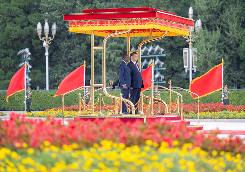 9月1日下午,國(guó)家主席習(xí)近平在北京人民大會(huì)堂同來(lái)華進(jìn)行國(guó)事訪問(wèn)的貝寧總統(tǒng)塔隆舉行會(huì)談。這是會(huì)談前,習(xí)近平在人民大會(huì)堂東門外廣場(chǎng)為塔隆舉行歡迎儀式。新華社記者 翟健嵐 攝