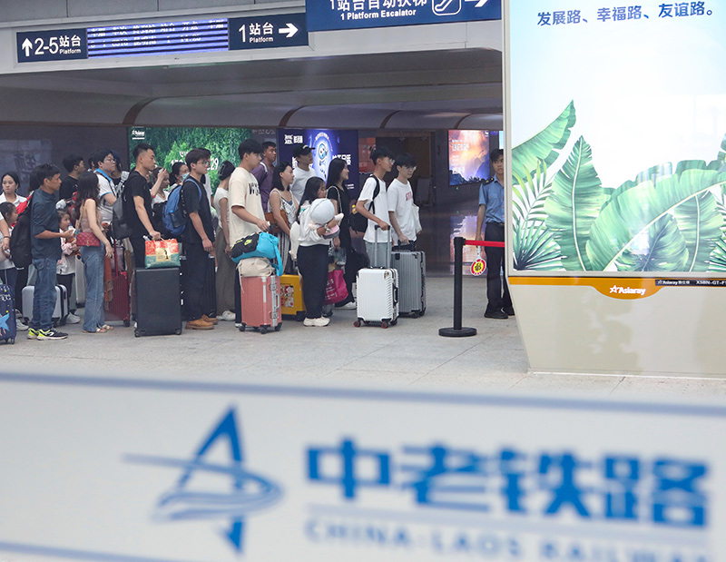 在云南景洪市的中老鐵路西雙版納站,旅客有序進入站臺乘車(2023年10月5日攝)。新華社發(李云生?攝)