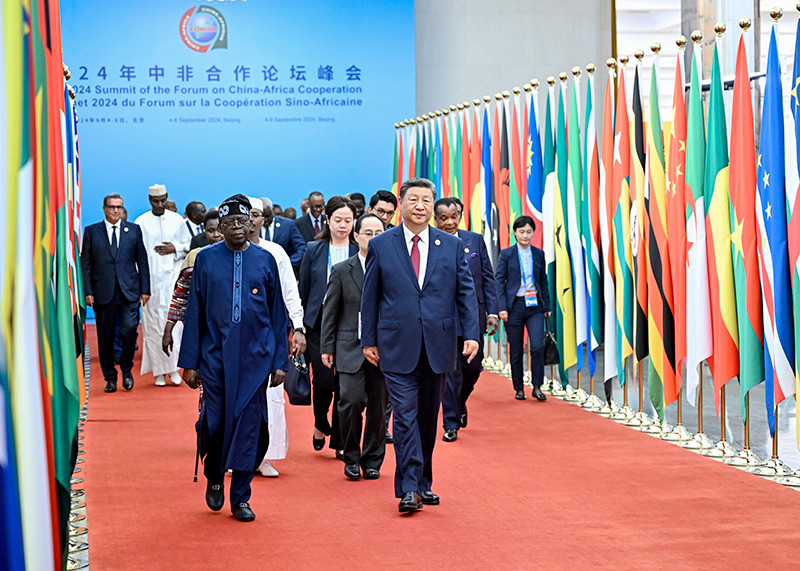 習(xí)近平指出,在這收獲的季節(jié),很高興同各位新老朋友相聚北京,共商新時代中非友好合作大計。中非友好穿越時空、跨越山海、薪火相傳。中非合作論壇成立24年來特別是新時代以來,中國同非洲兄弟姐妹們本著真實親誠理念,在世界百年變局中肩并肩、手拉手,堅定捍衛(wèi)彼此正當(dāng)權(quán)益;在經(jīng)濟全球化大潮中強筋骨、壯體魄,累累碩果惠及中非億萬百姓;在大災(zāi)大疫面前同甘苦、共拼搏,書寫了一個個中非友好的感人故事;始終相互理解、彼此支持,樹立了新型國際關(guān)系的典范。經(jīng)過近70年辛勤耕耘,中非關(guān)系正處于歷史最好時期。面向未來,中方提議將中國同所有非洲建交國的雙邊關(guān)系提升到戰(zhàn)略關(guān)系層面,將中非關(guān)系整體定位提升至新時代全天候中非命運共同體。