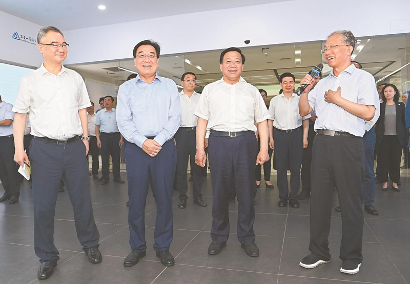 7月13日,省委書記韓俊、省長王清憲率安徽省黨政代表團,在江蘇省委書記信長星等陪同下,來到南京市參觀考察紫金山實驗室,詳細(xì)了解實驗室科技創(chuàng)新、體制機制、人才引進等情況。安徽日報記者 楊竹 攝